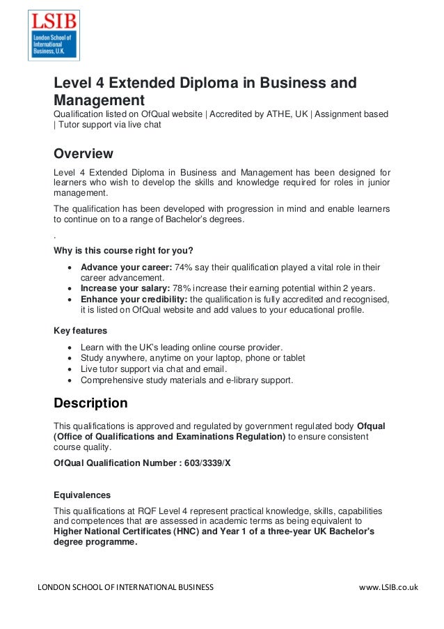 Level 4 5 Diploma In Business Management University 1 2 Lisd