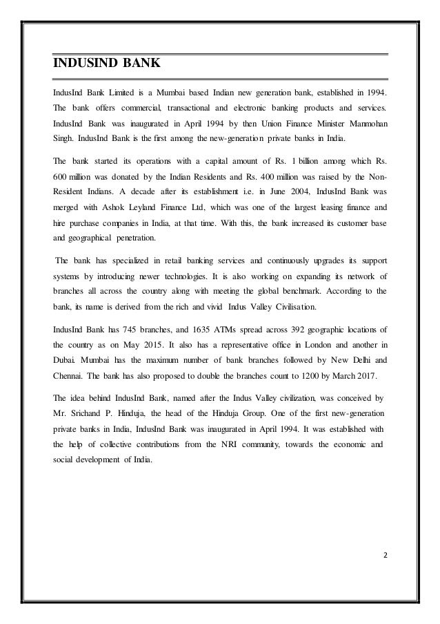For any Shareholders queries or grievances contact Mr. IndusInd Bank is a universal Bank with a widespread banking footprint with over 25 crore customers over 5000 distribution points and nearly 2000 branches across the country. Established in 1994 IndusInd Bank was the first among the new-generation private banks set up to drive the process of reforms in the post liberalization era in India.
