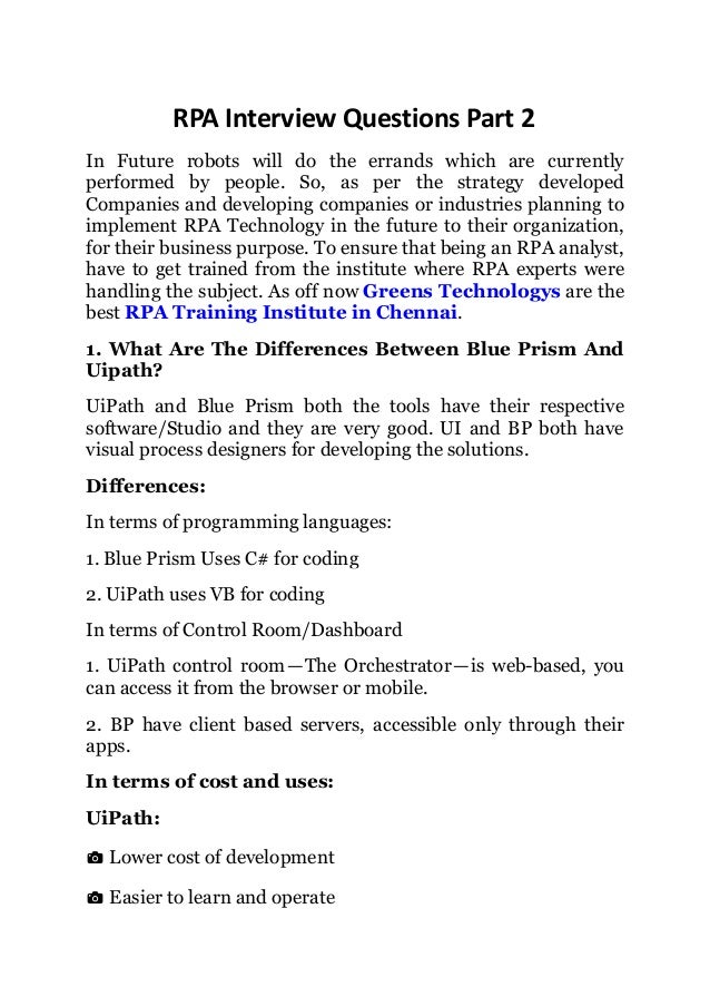 1 1 of 1 Interview Question. According to research RPA has a market share of about 73. Up to 15 cash back Gain superior RPA knowledge for analystdelivery manager interviews.