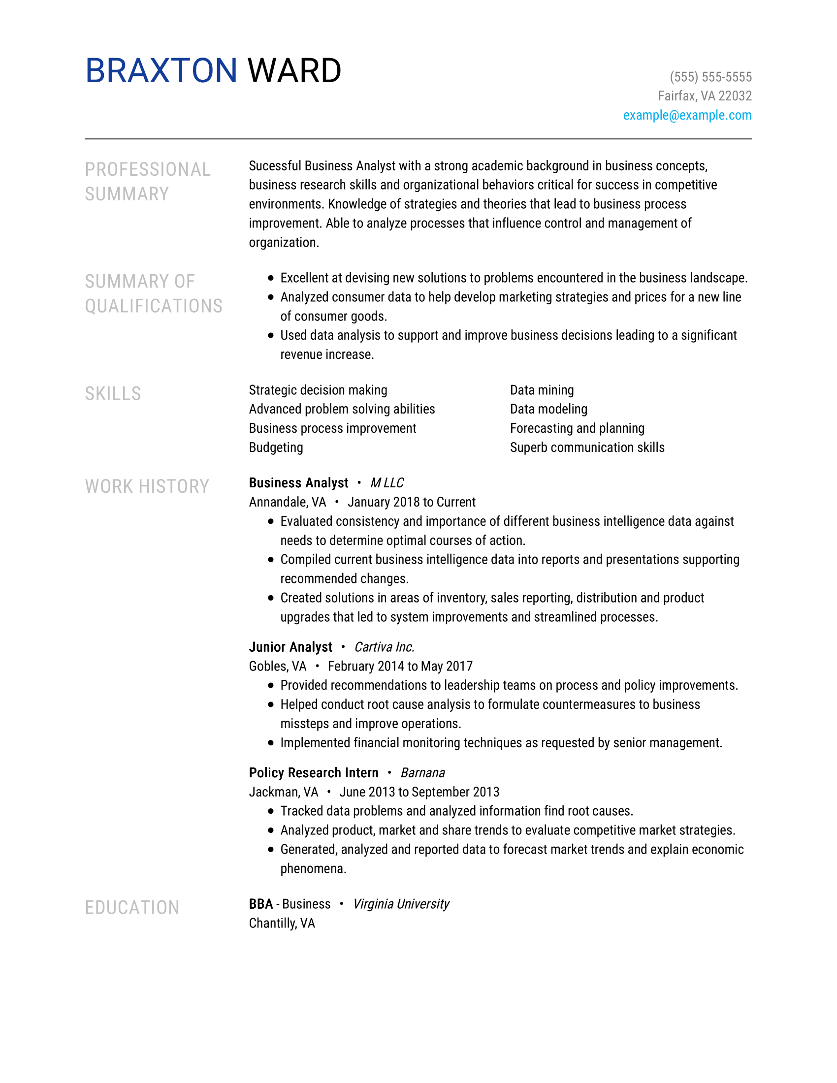 Business Analyst Resume Example Helpful Tips Myperfectresume
