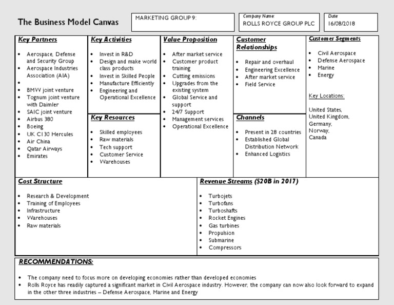 Rolls Royce Business Model Canvas Aerospace Manufacturing And Engineering